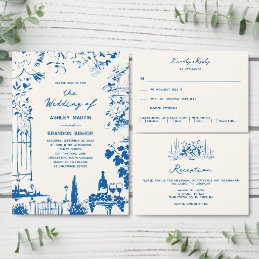 French Blue Whimsical Ribbon and Bow Wedding Tilläggskort