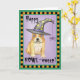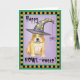 Överför Halloween hälsningar med detta kort av en gullig fransk bulldoggvalp som ha på sig en häxahatt som dekoreras med en enfaldig spindel. Den underbara för barn åldras allra vem kärlekFrenchies och Halloween. Ha ett lyckligt Tjut-oween!
