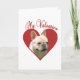 Ge din hund som älskar älsklingen denna design "för min valentin som" presenterar henne hunden, en fransk bulldogg, i en stor röd hjärta. Ge denna valentin daghunden på ett noterakortordstäv, "mig wuff dig".