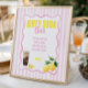 'Freshly Graduated' themed dirty soda bar poster with soft pink stripes and watercolor lemons.
