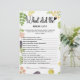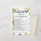 Fri från marknaden vad sa Bride spel? | Roligt Möhippa Quiz Ta reda på vem som bäst känner till "Fresh off the Market" - vad sa Bride? Det här engagerande och underhållande spelet är ett perfekt som kompletterar din jordbrukarmarknad, trädgård eller möhippa som kallas "rustika". Med våra namnteckning, handdragna produkter och beundransvärda blommigtar med vattenfärg kompletterar det på ett utmärkt sätt ditt färska, naturliga estetiska material. Så här spelar du upp: Innan duschen frågar du bruden en lista med frågor om sig själv, hennes preferenser, hennes förflutna eller brudgummen. Vid duschen, läs varje fråga högt och gästerna gissar vad brudens svar var! Det är ett roligt sätt att testa hur väl vänner och familj känner hedersgästen och ofta leder till insiktsfulla och lustiga avslöjanden om hennes personlighet och upplevelser. Spelkortet "What Do The Bride Say" ger gästerna frågor om hur de ska registrera sina gissningar i en attraktiv, tematisk design. Det är ett enkelt spel som uppmuntrar gäster till tänka om bruden och som ger vackra ögonblick av upptäckt när hennes verkliga svar avslöjas. Samordna den här roligten sömlöst med andra artiklar från vår "Fresh Off the Market"-samling, t.ex. inbjudningar, andra spelkort och skyltar, för ett vackert sammanhållet och underhållande evenemangstema. Du kan enkelt anpassa spelkortet genom att lägga till bridens namn, händelsemedatum eller anpassa frågorna så att de är specifika för briden (beroende på Zazzles mallfunktioner). Tillgänglig tryckt på kartong av högsta kvalitet eller som en praktisk digital nedladdning i hemmet. Klicka på "Anpassa nu" för att anpassa din Fresh Off the Market What was The Bride say Game Card (Upplev spel på marknaden) och tillföra din möhippa en liten bit trivia och personlig insikt! Vad sa brid, spel på möhippan, friskt marknadsspel, möhippa på jordbrukarnas marknad, rustic bröllop-spel, brudspel, utskrivbart bridspel, hur väl bekant med brid, trivia-spel, blommigtens duschjokort