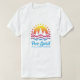 Denna t-shirt är underbar för människor som är fria spritdrycker och kärlek att resa eller utforska ställe. En scen för abstrakt illustreras med sol, vågar, träd och fåglar med färggradient. Den blå texten lyder "Fri spirit" och "över och utanför gränser" med ett skript och sunt serif-teckensnitt. En matchande hatt är också tillgänglig.