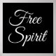 Med frasen "Free Spirit" i elegant, flytande skript, är denna poster perfekt för drömmare, vandrare och alla som följer sitt eget väg. Snyggtens typografi tillför en mjuk rörelse till utformningen, vilket skapar en känsla av öppenhet och frigörelse som omedelbart hissar något utrymme.