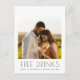 Kasta till kärlek med vårt gratis Drinks Winery Bröllop spara datum vycard. Framsidan har ett vackert foto av paret vid sidan av den lekande texten "Fria drycker och en lyckligt tillblivelse", som fångar glädjen och upprördheten hos ert kommande vineri bröllop. På baksidan hittar du alla nödvändiga uppgifter om bröllop och ser till att gästerna markerar sina kalendrar för ett firande fyllt med kärlek, skratt och bra vin. Perfekt för att bjuda in dina kära till på vinodlingen på din speciella dag!