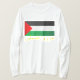 Palestinas flagga med frasen "fritt Palestina" i arabiska.