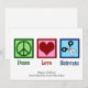 Frid Frisyrer Julkort för din favorit frisör som klipper hår på en skönhetssalong efter examen från frisörskola. Dessa coola frisör julkort har en fredstecken, hjärta och en sax.
