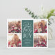 Det moderna julkortet med typografi har fyra av dina favoritfoton i fyrkantsformat, med "Fröjd, Kärlek och Glädje" centrerat i vit handskriven typografi. Personalisera med ditt familjenamn, individuella namn och/eller din anpassade julhälsning. Baksidan av korten har ett mönster av vita snöflingor och stjärnor på en festlig grön granbakgrund.