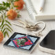 Retro Mixed media collage med Frida Kahlo, blommigt print och blue denim. Cute-retro-gåva till älskare, hippies och blombarn. En god gåva till Frida Kahlo fläkt, konst älskare, hennes arbetskamrater.