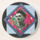 Retro Mixed media collage med Frida Kahlo, blommigt print och blue denim. Cute-retro-gåva till älskare, hippies och blombarn. En god gåva till Frida Kahlo fläkt, konst älskare, hennes arbetskamrater.