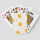 This deck of playing cards features a seamless fried egg pattern with sunny golden yolks and soft whites scattered across a clean background. The design feels fun but still polished—quirky without being over the top.