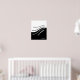 Friedrich Nietzsche poster: "Och de som sågs dansa trodde att de var galna av dem som inte kunde höra musiken." Vågarna i texten står för frihet, musik och dans. Svartvit.