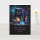 Svart katt med magisk potion Happy halloween-kort till en vän! Söt färg och en mystisk känsla