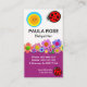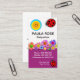 Täcket har en färgfull uppsättning blommor med stegbuggar runt. Över längst upp ljuger ditt prestigefyllda namn och din jobbtitel. På basen finns kontaktuppgifter och en slogan som du kan ändra. Överklocket, en logotyp i lycklig sol som du kan ha använda på är överst. Detta följs av ditt prestigefyllda namn, kontaktuppgifter och ett sloganbildsalternativ som du kan ändra. #baby #babyvvakt #babysit #babysittingservice #nanny #barnavård #dagavård #kindergarten #children #children #teenbabysit #blomma #zazzlemade