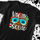 Kom in i vakuumläge med den här roligtens tropiska semesterdesign! Perfekt för en passande familjerester, en par resa eller helg som kommer med vänner! Underbar för semester till Florida, Hawaii, Jamaica, Mexiko eller var som helst med sandstränder och varma solsken! Med "Vacay Squad" (Vacay Squad) med aviator solas bilder och träd i handflatan med bilder från stranden boll och flip flop grafik på en solnedgång i vintagen.