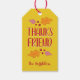 Lägg till den perfekta finishing touchen till dina Friendsgiving-favoriter med denna lekfulla röda och gula presentetikett. Med höstlöv och glada "Thanks Friend" -bokstäver koordinerar den med dina Friendsgiving Feast-inbjudningar och tillbehör.