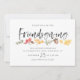 Den här inbjudan till Friendsgiving innehåller exklusivens handmålade vattenfärgsfallsblad med "Friendsgiving" i ett modernt penselskript. Det kommer också med ett matchande fall från mönster på baksidan för en speciell beröring i extra.