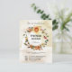 Samla lite till ge tack denna Helgdag och skicka inbjudningar till Thanksgivingen med detta vackra vykort för inbjudan till vänner. Den här Thanksgivingens vykortsinbjudan för vänner har en mjuk neutralt vattenfärgsbakgrund med en krans av höstblommor som innehåller en gyllene solros. Anpassa den här Thanksgivingen för blommigt med all din personliga .