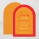 En modern välvd "Friendsgiving" Thanksgiving middagsinbjudan i höstfärger, orange och röd.