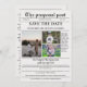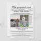 Minimalistisk frieri tidningen bröllop spara datum efter skript med tre foto, ett foto av brudgummen och bruden när de var barn och när de växte upp.