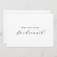 Det här frieri-kortet för elegant-skript är perfekt för ett enkelt bröllop. Den minimalistiska svartvita designen har romantisk typografi i finare med modernt glam stil. Anpassade i alla färg. Behålla designen minimal och klassad som den är, eller anpassa den genom att lägga till egna bilder och teckningar. Anpassa kortet med namn på bruden och briderna. Anpassa kortets baksida med ett meddelande om personlig.