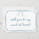 Fråga maid of honor i stil med den här lättsinniga chicen frieri kort med en delikat handborr och gräns i en mjuk blåpalett. Den tidlösa utformningen är perfekt för alla bröllop-teman, från klassisk elegans till vismisk romantik. Anpassa kortet enkelt med ditt maid of honor namn och ett hjärtligt budskap för att få en speciell, personlig beröring. Oavsett om du planerar en stor affär eller en intim sammankomst, erbjuder det här frieri kortet ett vackert sätt att fira brudens sida med underskattad charm. Idealisk för bruden som vill ha elegans med en modern twist.