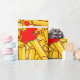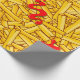 Superskojets tecknad är pappert mönstrad med Fransk fries stänkt med röd ketchup.