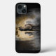 En mistscen med solskenantydningar som dyker upp genom träd omger dessa tre frigående, svarta frisiska hästar.