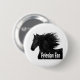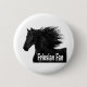 Porträtt av en härlig svart friesianhingst med den långa flödande manen som fotograferas och som är designat vid Magdalena Strakova. Inskrift: Friesianfläkt. Unik och original- gåva för varje friesianhästälskare!