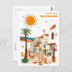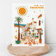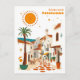 Det här vykortet från Frigiliana, Andalusien, Costa del Sol, Spanien är en fantastisk konst. Det visar en vacker gammal medelhavsstad med vita hus, en kullersten gata, ett palmer och en stor sol. Det är ett perfekt vykort för Frigiliana-bor, besökare, turister eller fans.