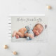 Med ett kort för snyggt av fotografering för att presentera ditt snygga nyfödda pojke får du ett nyfött foto på 5 x 7 tum med modernt kalligrafi-skript med mjuk svart övertäckningstext som kan vara personlig med baby namn och födelsestatus. Ett mönster av mjukt svart och vitt vågrät rand går bakåt i den minsta kortdesignen.