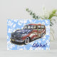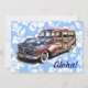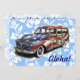 Denna ursprungliga illustration av en vintage vedjegodsvagn i station kombineras med en amerikansk flagga som skapar detta som den perfekt som surfar på bil. Den visas på en hibiscus-blommigt som trycks av en vintage Aloha-skjorta. Anpassa det här kortet till nästa luau, BBQ, party eller till vilken hälsning som helst.