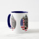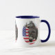 Visa er patriotism med roligten mugg som visar en söt åsna framför den amerikanska flagga. "Frihet" kommer från mitt originalfoto och lyder under min upphovsrätt.