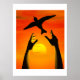 Två armar som friger en fågel med en strålande solnedgång bakom