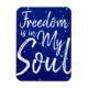 Var kan frihet existera förutom i själen? Ett vackert handskrivet stil-teckensnitt med mörk blått bakgrund av stjärnor.