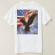 Flygörnen med amerikanska flaggan och soluppgången i bakgrund över snö capped berg