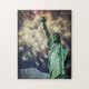 Snygg foto i kombination med Frihetsgudinnan mot USA flagga och fyrverkeribakgrund. Bilden får en grungande övertäckning för ett gammalt nostalgiskt utseende. Underbar för alla patriotiska amerikanska helgdagar. Den här bilden finns på många Zazzle-produkter.