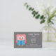 Ett affärskort för snyggt och professionell som lämpar sig för lärare eller lärare som utför frilansstudier. Detta kort skulle vara lämpligt för grundskole-/lågstadielärare/klass eller högskolelärare/högskolelärare. Det här kortet har en söt tecknad av en läsande uggla och kan anpassas så att det omfattar dina egna personuppgifter och din undervisningsspecialitet och/eller dina kvalifikationer.