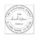 Detta är en vacker returadress för självbläddring i gummi frimärke som har familjen namn och adress