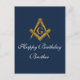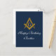 Marinblå, Frimurare Grattis på födelsedagen-kort. Masonic fyrkant och kompass Födelsedags postkort. Vänligen anpassa det med din egen text eller ta bort det och skriv dina egna ord för hand.