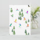 Cool nyckfull illustrationskonst av färgglada snowboardåkare som åker nedför bergen bland tallar, granar, ädelgranar på färsk snö. Snowboard och jul utomhus sport i en vinter skog. Snowboard-presenter. Snowboard juldekoration.
