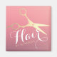 Hår Salong / Frisör / Frisör / Skönhetssalong / Sminkare / Stylister / Bröllopsplanering / Evenemangsplanering / Konsulter / Butiksägare / Modedrottningar Personliga Magnetmallar - Moderna Falska Guld Saxar på Rosa Gradient Bakgrund.