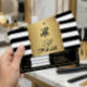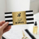 Frisörlogo gåvovoucher guld svart-vit randig
