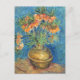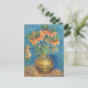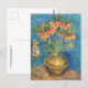 Ett fint konstkort med den post-impressionistiska målningen av den holländska konstnären Vincent van Gogh (1853-1890) med titeln, Fritillaries i en kopparvas (1887). Fritillaria är en vårblommande lök. Ett stilleben av röd-orange blommor i en kopparkittel mot en blå bakgrund.