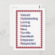 Positiva ord som värderad, enastående och unik utgör orden frivillig på detta roliga kort. Designen är gjord i rött, vitt och blått och omges av en röd hjärtkant.