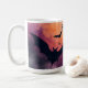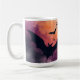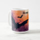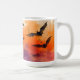 Big, spooky fladdermus flyger över en solnedgång på färgaden på detta läskiga, hemsökt Halloween mugg.