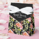 Vackra rosa och röda akvarellblommor och elegant grönska på en svart bakgrund framhäver dessa bandstängda bröllopsbröllopsdusch tält-stil festgåvor. MATCHANDE artiklar i vår butik.