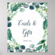 Denna frodiga grönskande och eukalyptus kort och present skylt är perfekt för en elegant trädgårdsbröllop eller brudvisning. Den moderna botaniska designen har vackra akvarellblå eukalyptus och gröna blad. Textraden längst ner på skylten kan anpassas med datumet, brudens och brudgummens namn eller ett kort meddelande som "Tack". Denna skylt kan användas för ett bröllop eller någon annan händelse eller fest.