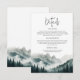 Fånga den tysta storslagenheten i bergen med det akvarellfodrade kuvertet Verdant Peaks Misty Forest. Designen visar en hisnande, handmålad landskapsbild med höga städsegröna träd och böljande bergstoppar insvepta i en mjuk, eterisk dimma. De djupa skogsgröna och rökiga teal-färgerna skapar en stämningsfull, organisk atmosfär som är perfekt för ett bergsbröllop eller en intim skogsceremoni.