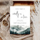 Skapa en oförglömlig ton för ditt bergsinspirerade bröllop med den dimmiga skogsakvarellinbjudan Verdant Peaks. Denna fantastiska design har ett original, handmålat landskap med höga städsegröna träd och böljande åsar i en mjuk, eterisk bergsdimma. Med en rik färgpalett av djupa skogsgröna, kolgrå och dimmiga teal färger fångar denna inbjudan den tysta, stämningsfulla prakten i en skogsretreat.