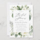 Frodiga vita blommor och grönska bröllopsdusch inbjudningar